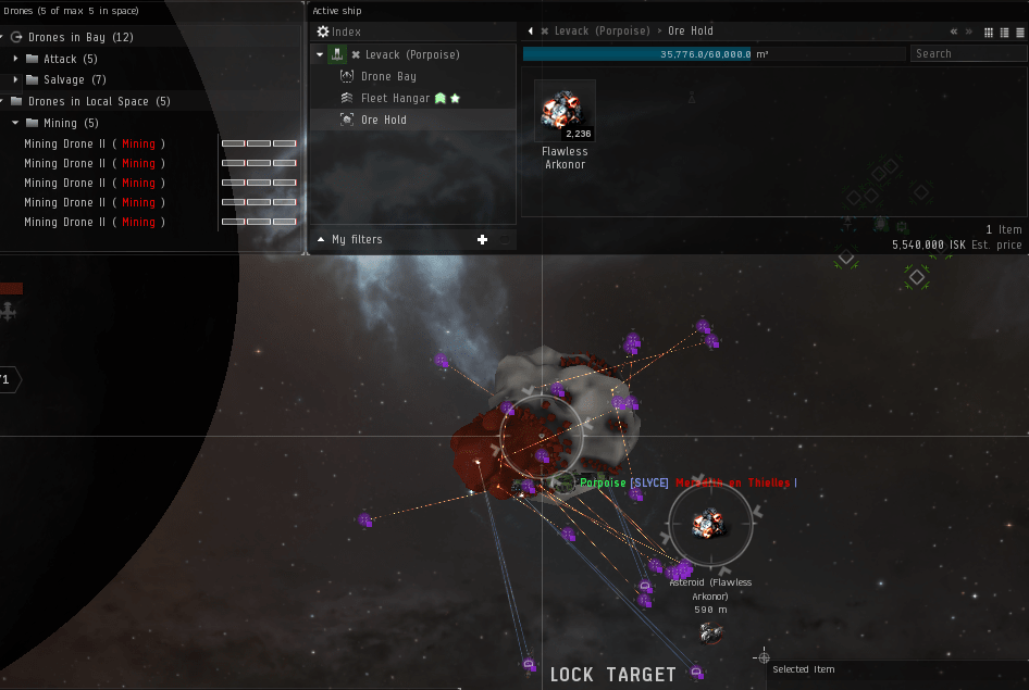 My personal preference changes depending on the relatively hostility of the space around me, and whether there are hostiles roaming about in my corner of space. That means I typically fly a prospect, and while that does cut into the bonuses that I would get from an endurance it does mean I have two lasers drilling ice and the ability to cloak and warp off if I need to. I also still have the hold space to get a decent amount of ice while I’m out there. If I’m out as part of a fleet or with company watching my back, then I generally prefer my skiff.